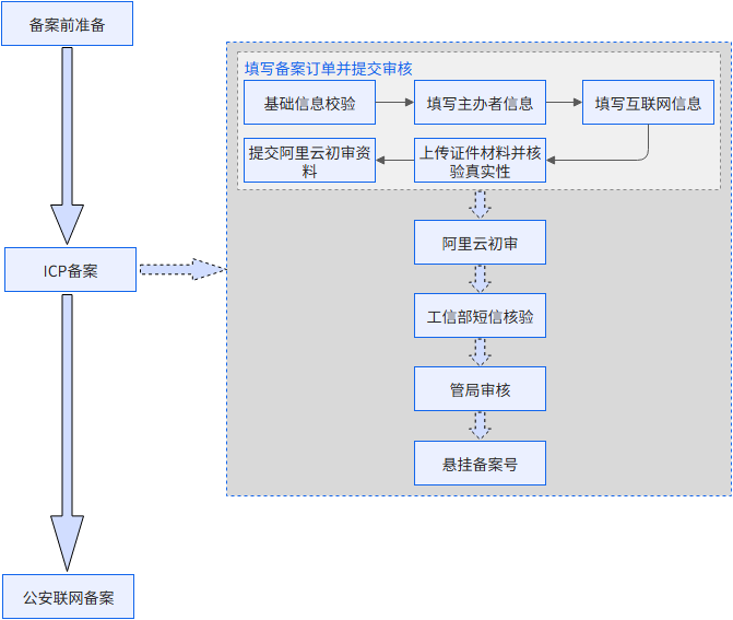 - 阿里云初审通过后,您会收到备案订单已提交管局的短信。