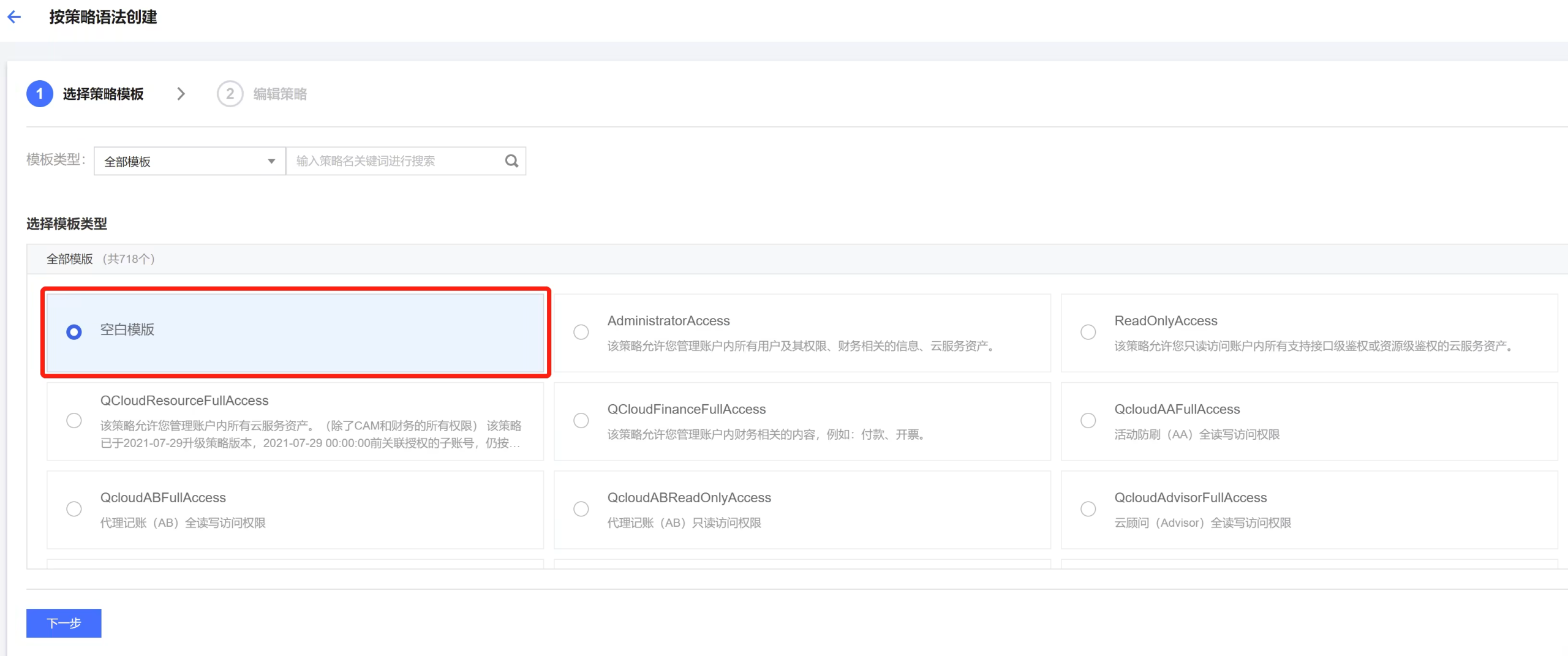 (可选)创建一个策略,策略的名称以及描述可以根据自己的需求填写,策略内容复制示例代码后,将红框中的内容替换成对应的信息。