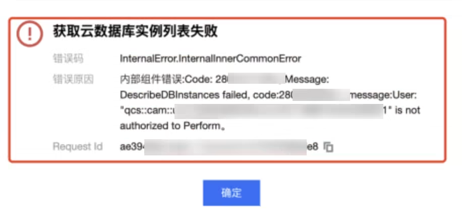 2. 获取云数据库实例列表失败:InternalError:InternalInnerCommonError
