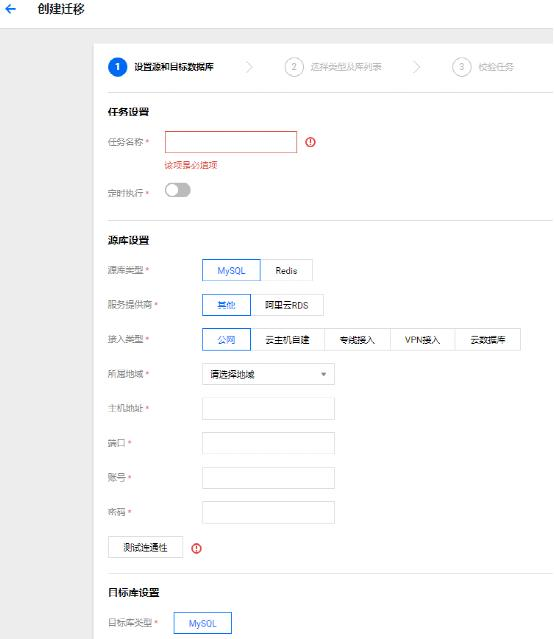 登录控制台,进入数据迁移页面,单击【新建任务】,输入相关信息及本地IDC实例的信息