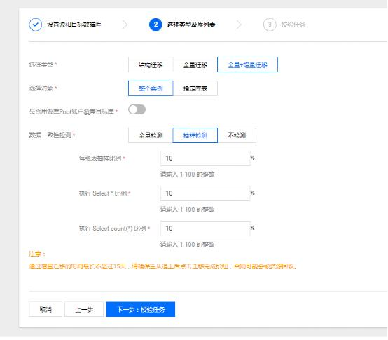 选择同步类型,这里需要选【全量+增量数据迁移】,即一直与本地IDC的数据库保持同步关系