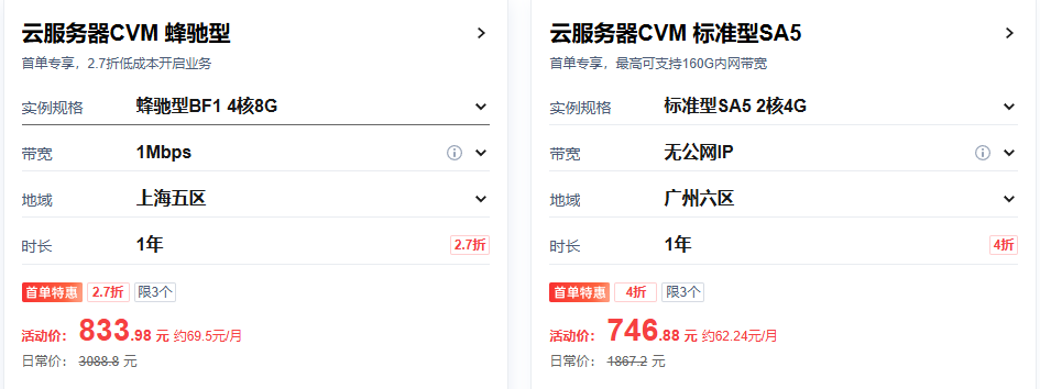 CVM 蜂驰型,首单低至2.7折,旗舰第9代云服务器,1年低至6.4折,叠加满减券更优惠!