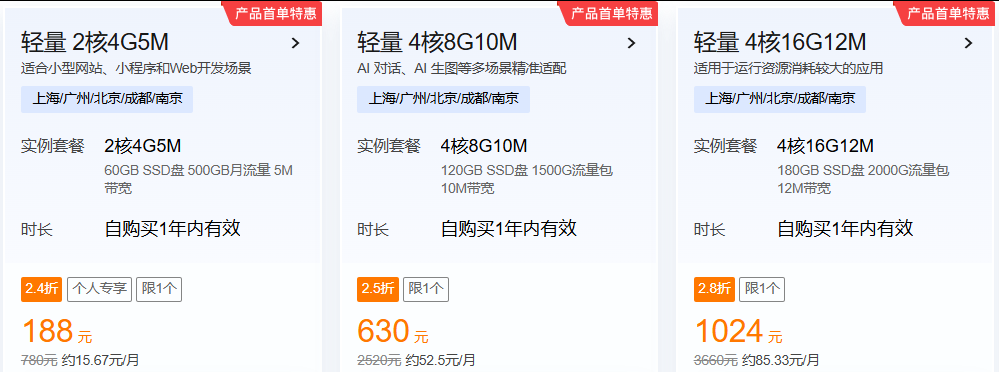 简单易用,高性价比套餐,一键部署热门应用,支持IPv6,免费独立公网IP。新用户享超低折扣,低至79元/年!