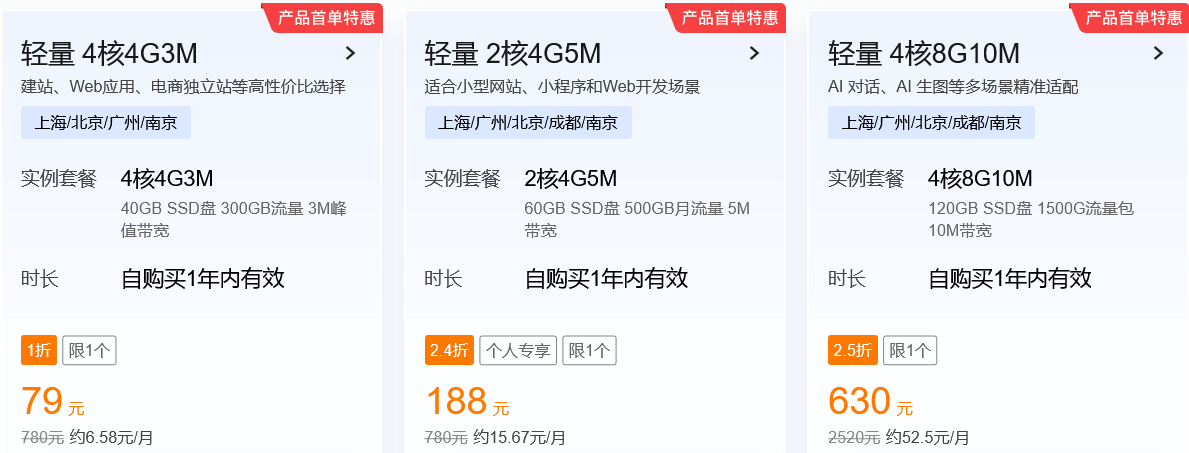 - 企业专区:企业用户尊享专属折扣,部分配置首单特惠低至 2.5折。