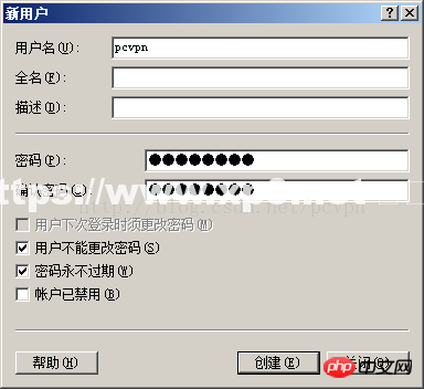 4.3、双击新增加的用户“pcvpn”弹出“属性”窗口