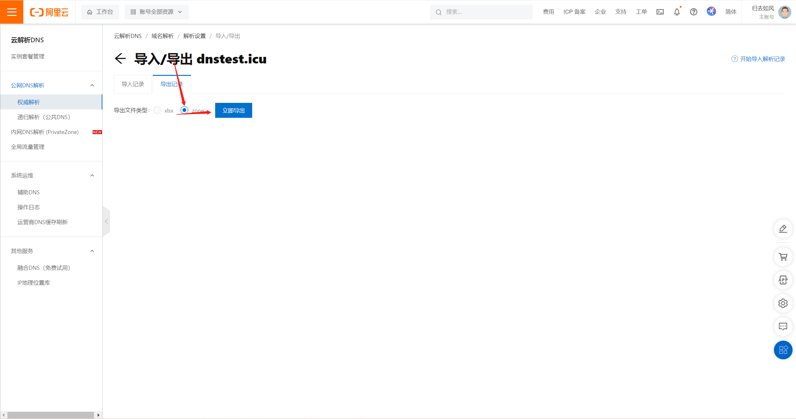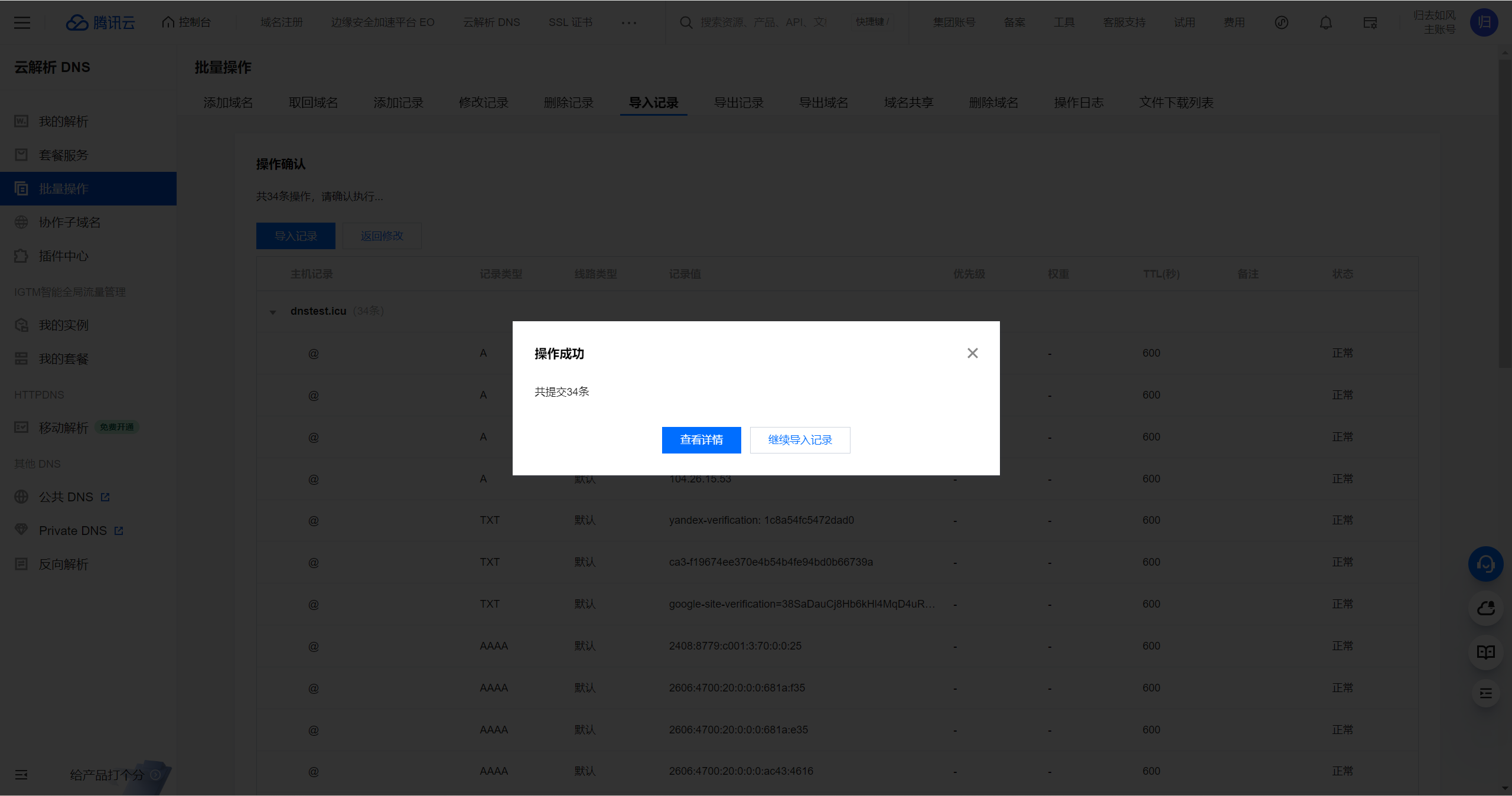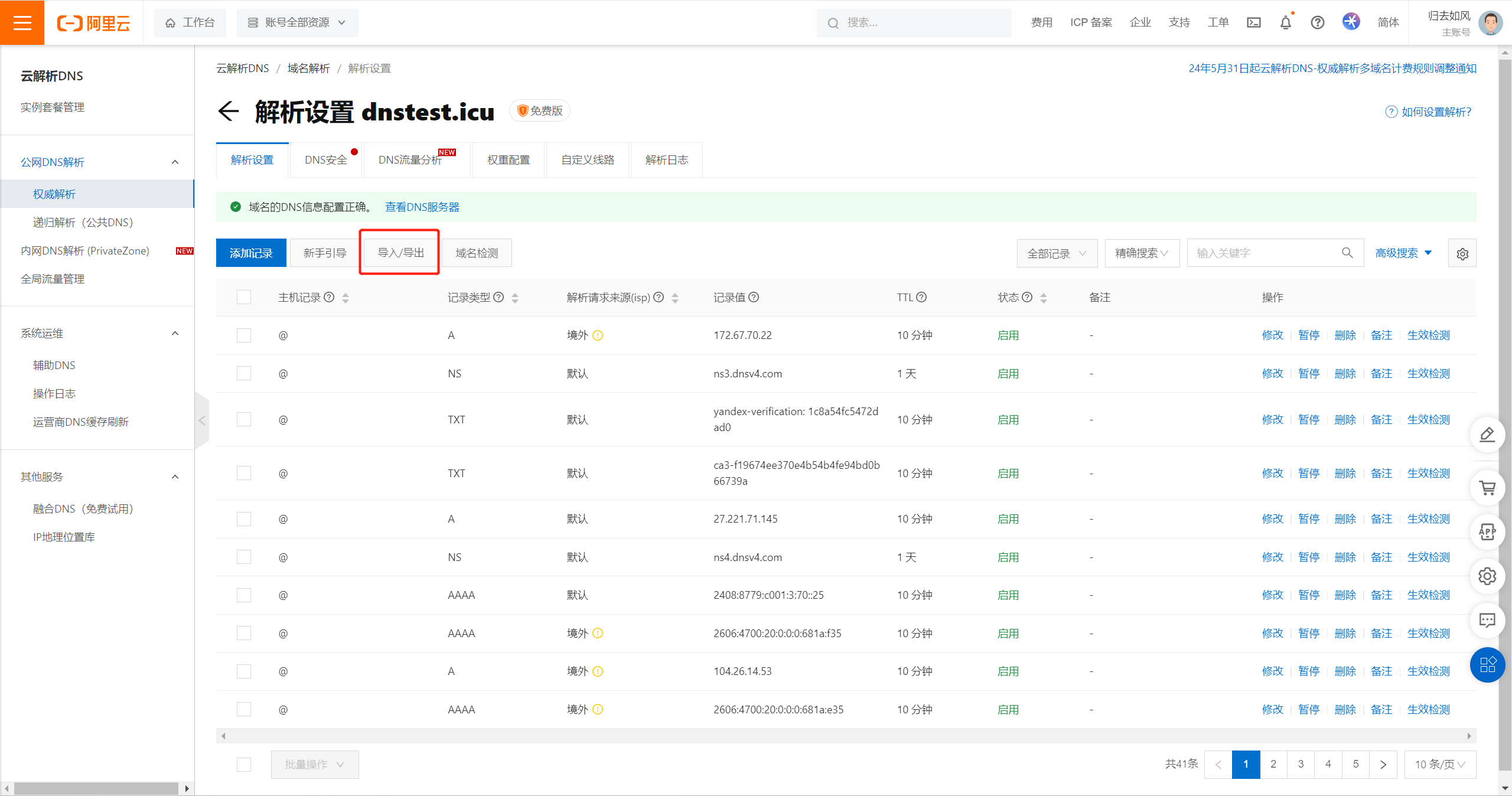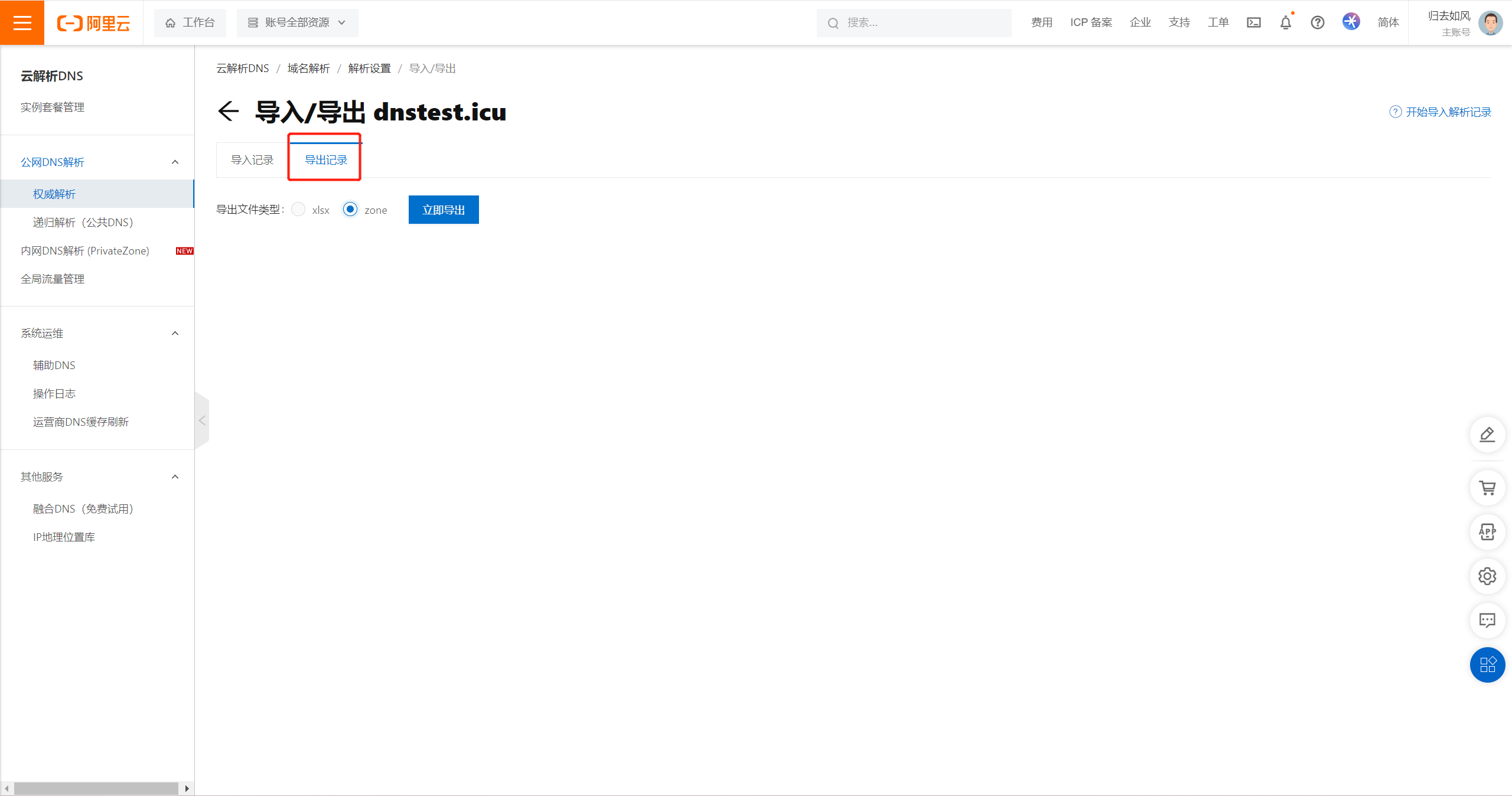 .zone,否则将无法正常识别。 - 确认导入的记录是否正确,阿里云导出的