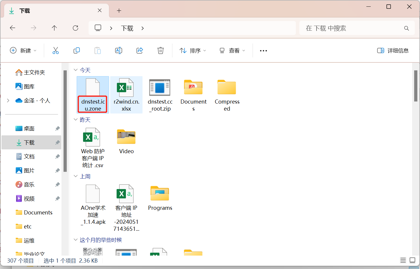 导出完成后重命名文件,添加.zone后缀,如下两图所示: