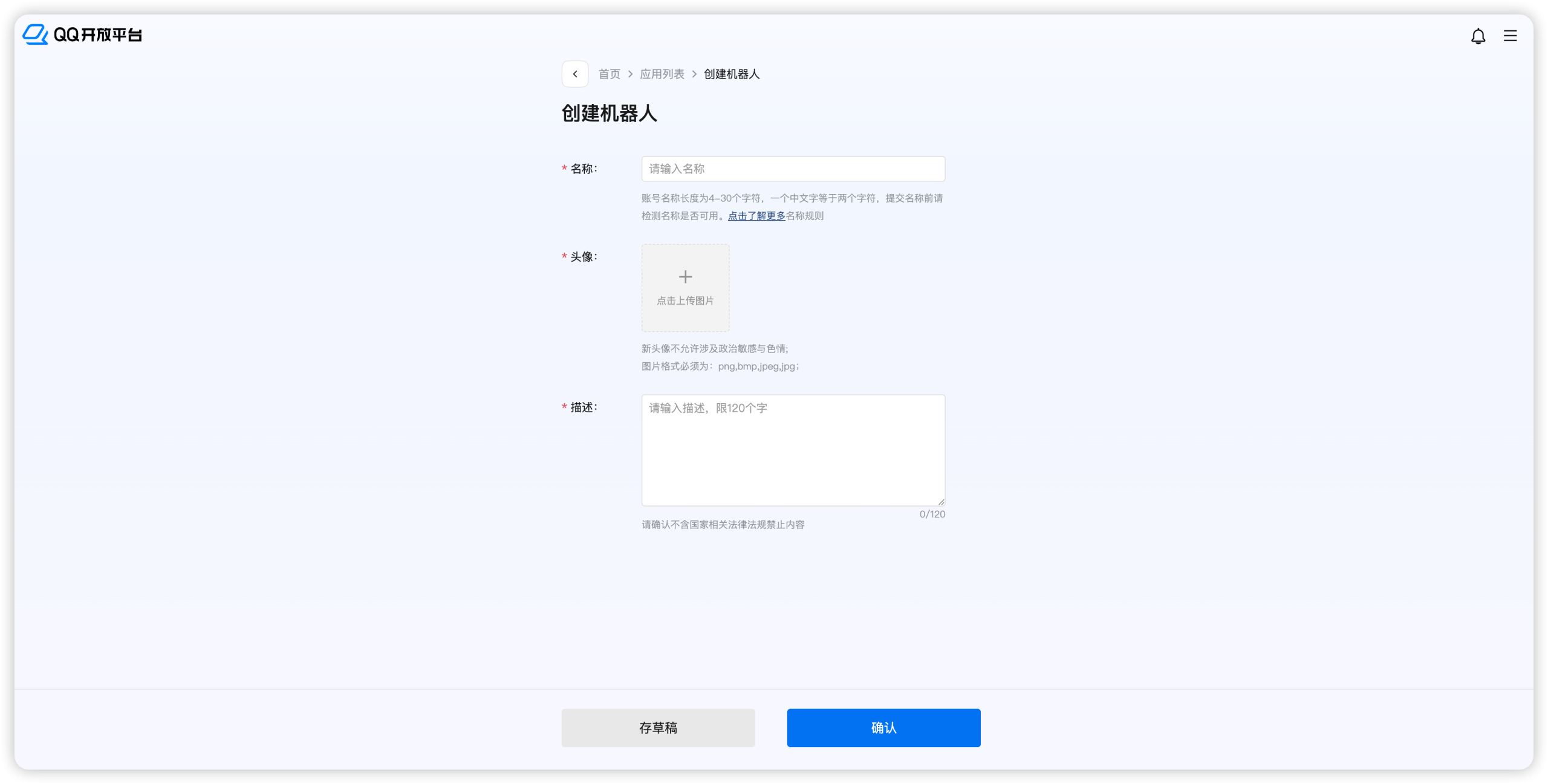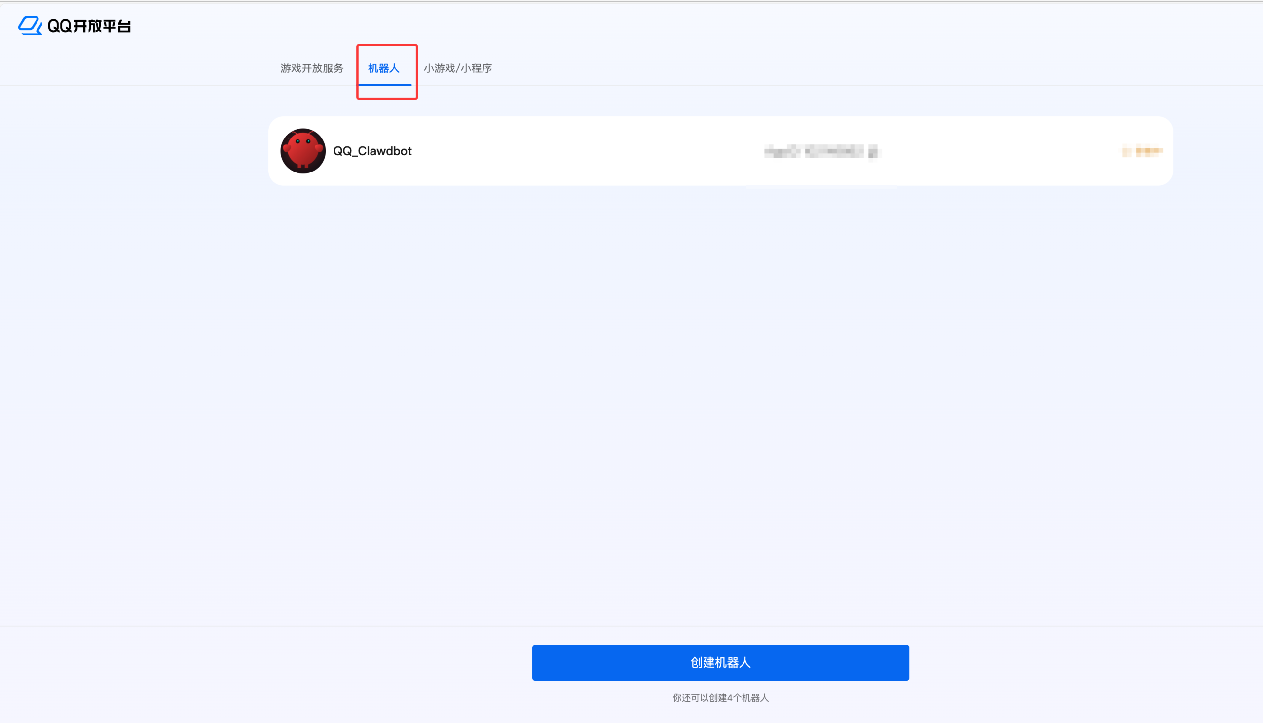 在QQ开放平台申请机器人,自己使用无需企业资质,指定用户,指定群聊可访问即可 QQ开放平台