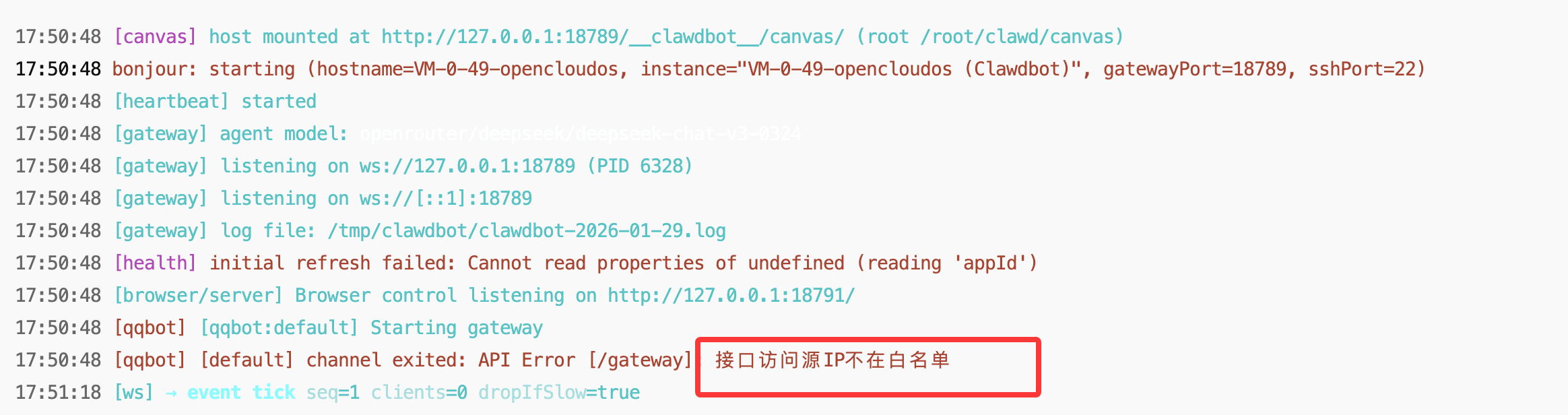 可以看到是因为IP没有在QQ Bot的管理平台注册