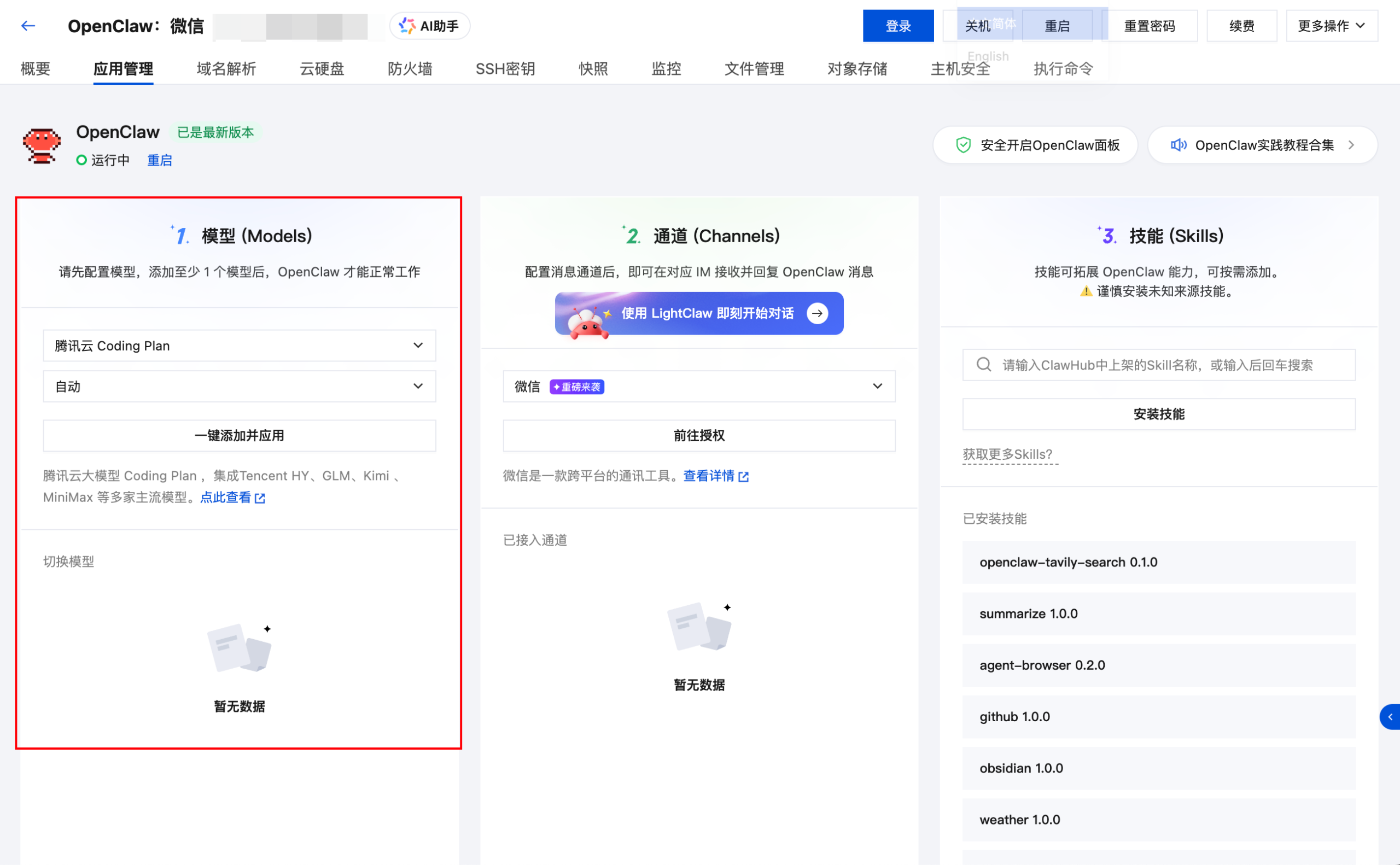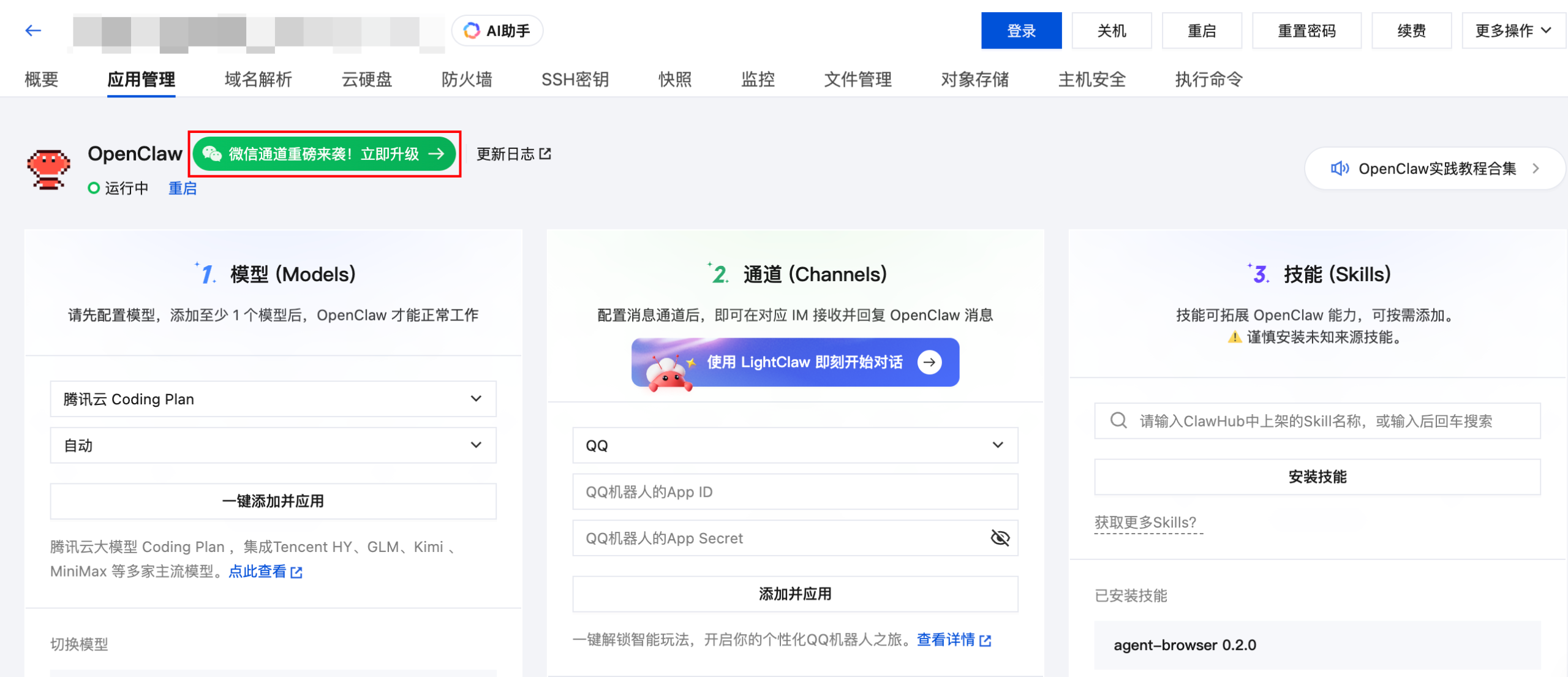 - 参考云上OpenClaw一键秒级部署指南完成云端OpenClaw部署;或参考如何更新服务器OpenClaw应用版本更新你的云端OpenClaw。